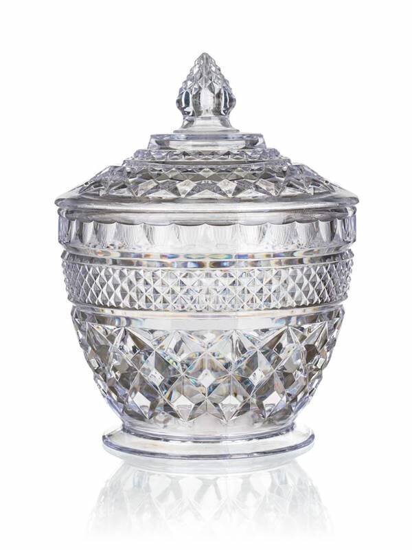 Šis elegantais cukurtrauks ir ne tikai trauks produktu uzglabāšanai, bet arī ekskluzīva galda dekorācija. Tā virsma ir rotāta ar klasisku reljefa rombu rakstu, kas skaisti atstaro gaismu un atgādina greznus kristāla izstrādājumus.