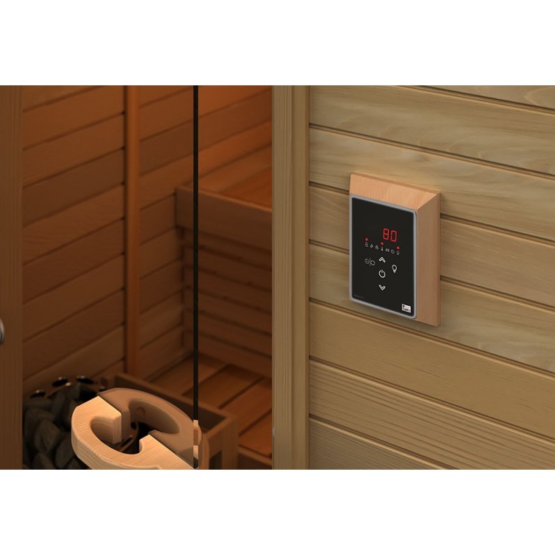 - ✅ Gudra Saunova 2.0 vadība: Intuitīvs skārienjūtīgais panelis ļauj programmēt temperatūru, laiku, kontrolēt apgaismojumu un pirts ventilāciju.