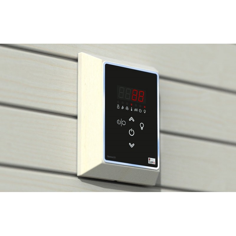 - ✅ Viedā Saunova 2.0 vadība: Skārienjutīgs panelis ar intuitīvu saskarni ļauj precīzi ieprogrammēt pirts temperatūru, laiku, kā arī vadīt apgaismojumu un ventilāciju.