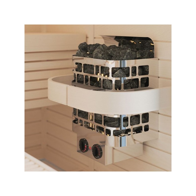 ✅ Liela akmeņu ietilpība: 40 kg akmeņu nodrošina ilgstošu siltuma saglabāšanu un iespēju iegūt daudz tvaika, uzlejot ūdeni.