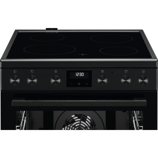 60 cm plata brīvi stāvoša elektriskā plīts ar stikla keramikas plīts virsmu un daudzfunkcionālu “SurroundCook” cepeškrāsni. Ideāli piemērota ģimenēm, kas novērtē daudzpusību, lielu cepeškrāsns ietilpību un lieliskus cepšanas rezultātus.