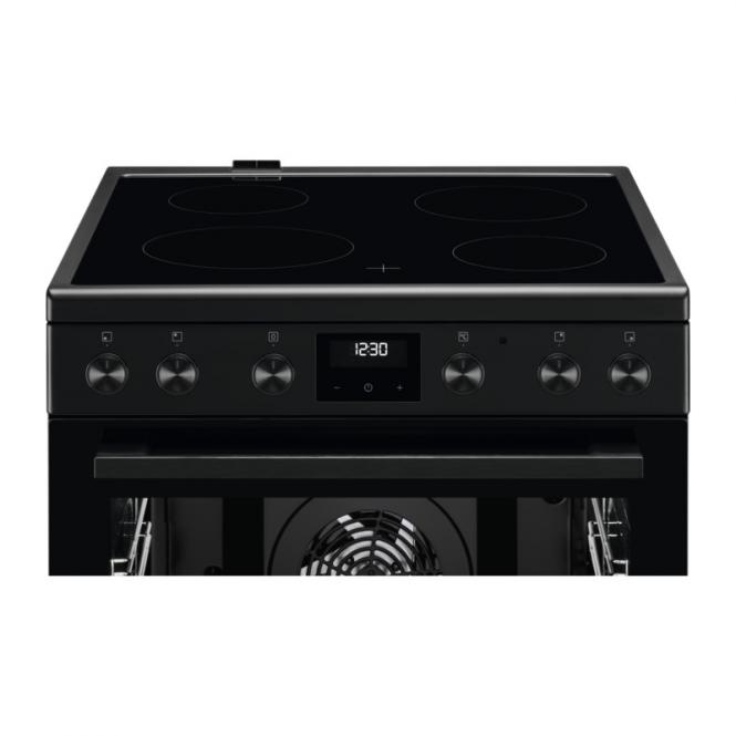 60 cm plata brīvi stāvoša elektriskā plīts ar stikla keramikas plīts virsmu un daudzfunkcionālu “SurroundCook” cepeškrāsni. Ideāli piemērota ģimenēm, kas novērtē daudzpusību, lielu cepeškrāsns tilpumu un izcilus cepšanas rezultātus.