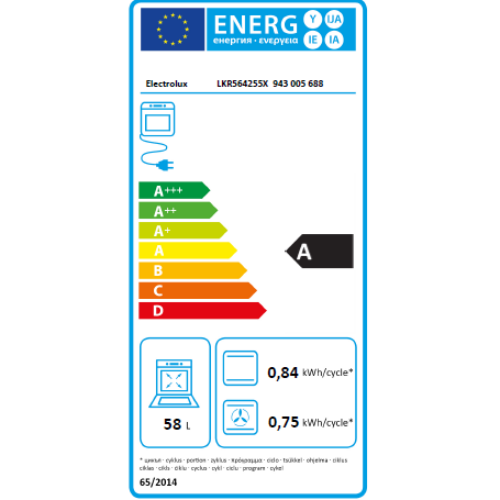 - Cepeškrāsns tilpums: 58 l