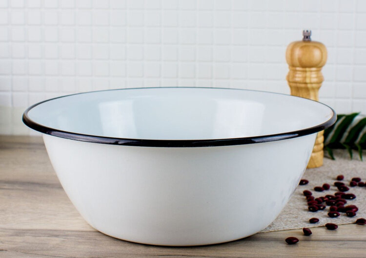 - Drošība: Dubultais emaljas pārklājums uzticami aizsargā tēraudu no korozijas un ir pilnīgi inerts. Tas nereaģē ar ēdienu, nemaina tā garšu, smaržu vai krāsu, tāpēc bļoda ideāli piemērota ne tikai maisīšanai, bet arī pārtikas uzglabāšanai.