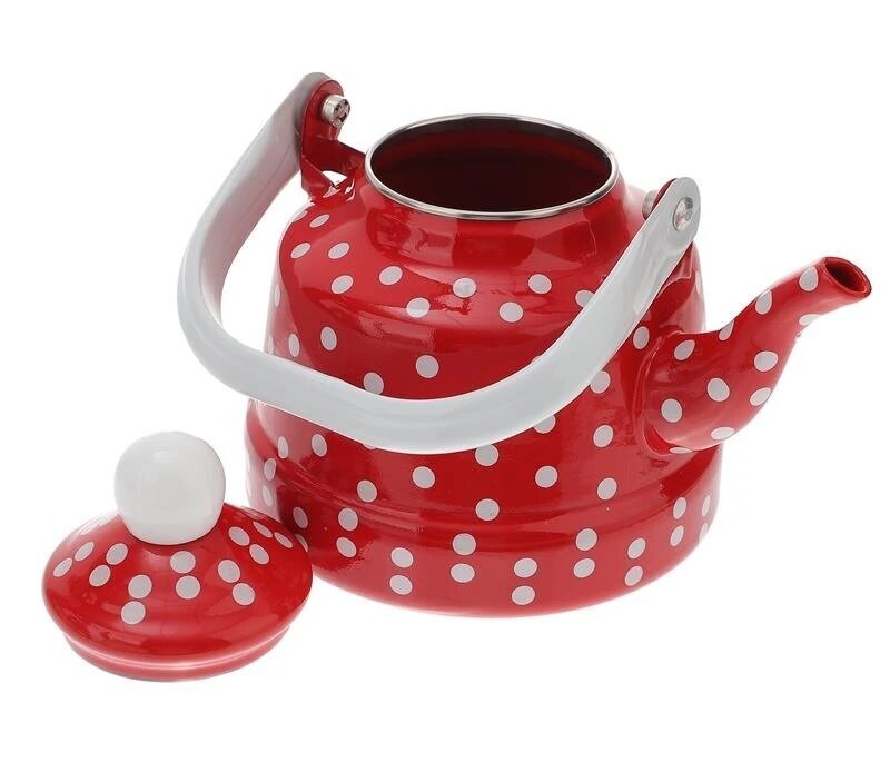 Šī 2,5 litru emaljētā tējkanna ir stilīgs un praktisks risinājums jūsu virtuvei. Tās klasiskā forma, izturīgais emaljas pārklājums ar spilgtu uzlīmi un ērtais rokturis padara to ideāli piemērotu ikdienas lietošanai. Iegādājoties 2,5 litru emaljēto tējkannu, jūs izvēlaties uzticamību, ērtības un stilu. Tās klasiskais retro dizains spilgti sarkanā krāsā ar baltiem punktiņiem acumirklī uzlabos jūsu garastāvokli un piešķirs jūsu interjeram eleganci. Priekšrocības: