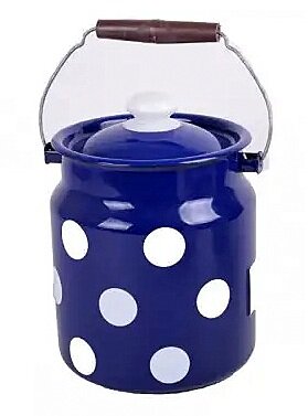 Šis emaljētais spainītis (kanna) ir lieliska izvēle tiem, kas novērtē tradīcijas un retro stilu virtuvē. 3,3 litru tilpums ir universāls – tas lieliski piemērots ne tikai svaiga piena atnešanai, bet arī ogu, sēņu lasīšanai vai vienkārši beramu produktu (miltu, putraimu) uzglabāšanai.