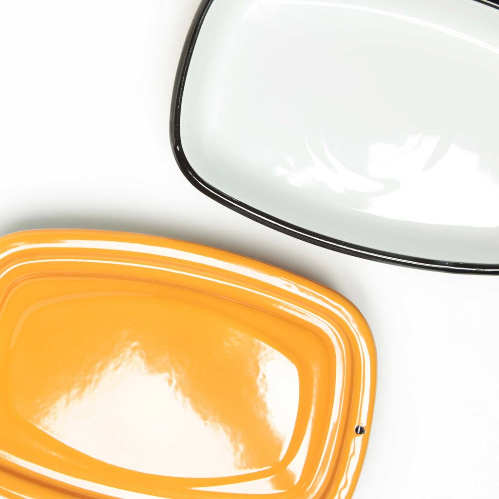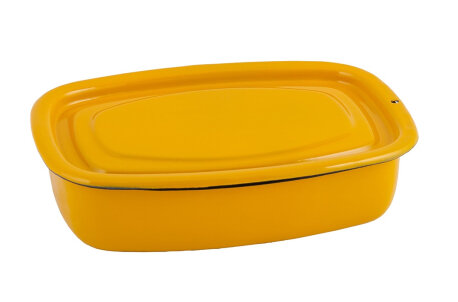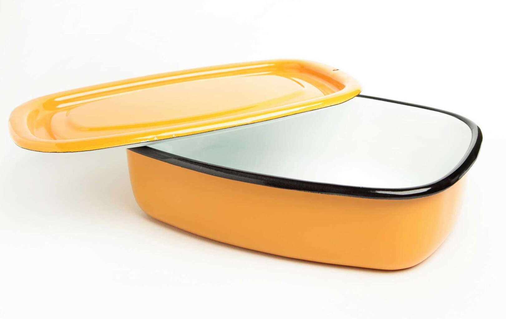 - Uzglabāšana: Emalja ir inerta, tāpēc ēdiens tajā nebojājas, neiegūst metāla garšu un ilgi saglabājas svaigs. Vāks pasargā no smaku izplatīšanās ledusskapī.