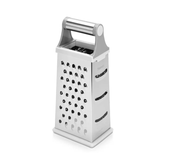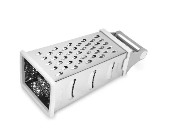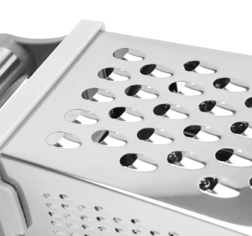 - Kādiem produktiem ir paredzētas dažādās puses? Lieli caurumi ir lieliski piemēroti sieram vai dārzeņiem salātiem. Mazāki – kartupeļu pankūkām vai burkāniem. Griezējs – gurķiem vai kabačiem. Bet vissmalkākā puse – ķiplokiem, ingveram, citrusaugļu mizai vai cietam sieram.