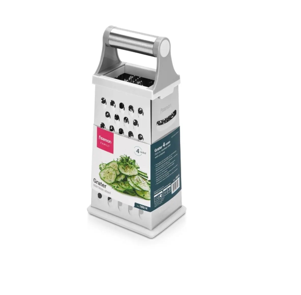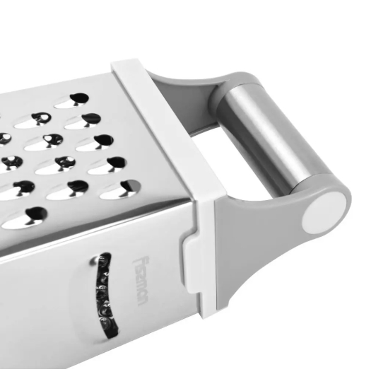 Fissman četru sānu rīve ir daudzfunkcionāls virtuves rīks, kas aizstās vairākas dažādas rīves un ietaupīs vietu Jūsu atvilktnēs. Tai ir četras dažādas griešanas virsmas, kas piemērotas dažādiem uzdevumiem: rupjai rīvēšanai (piemēram, sieram, dārzeņiem), smalkai rīvēšanai (piemēram, kartupeļu pankūkām vai biezenim), griešanai šķēlītēs (piemēram, gurķiem) un ļoti smalkai rīvēšanai (piemēram, ķiplokiem, ingveram vai citrusaugļu mizai).