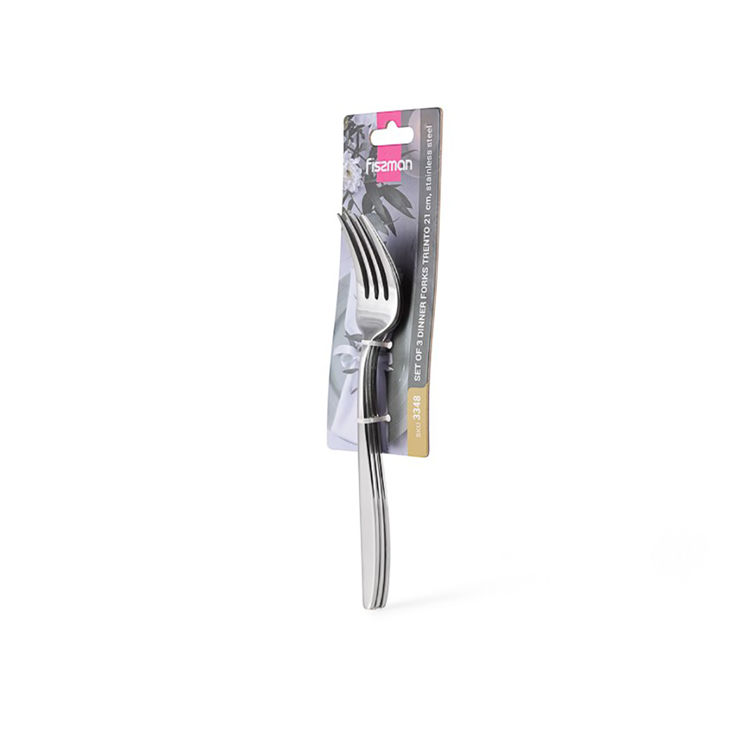 Specifikācijas Tips: Galda dakšiņu komplekts Zīmols: Fissman Sērija: Trento Modelis: F-3348 Materiāls: Nerūsējošais tērauds 18/0 Virsma: Spīdīga Gab. skaits: 3 Izmēri (vienai dakšiņai): 21 x 3 x 2.5 cm Ražotājs: Fissman (Dānija) Svars (komplekta): ~0.2 kg Iepakojuma izmēri: 25 x 9 x 3 cm