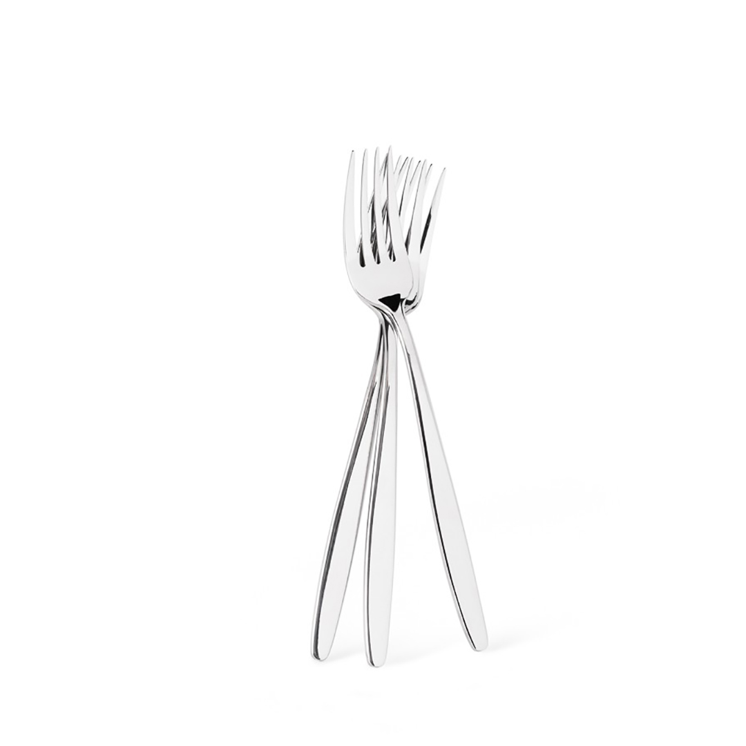 “Trento” galda dakšiņu komplekts ir praktisks un elegants veids, kā papildināt esošo galda piederumu kolekciju vai aizstāt pazaudētos. Klasiskais, minimalistiskais dizains un spoguļgludums lieliski saderēs ar jebkuru galda klājumu, piešķirot tam svinīgumu un solidaritāti.