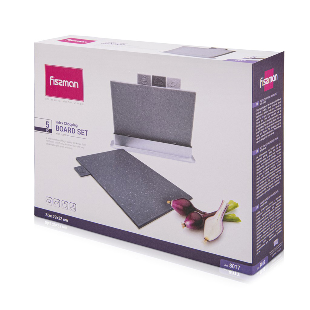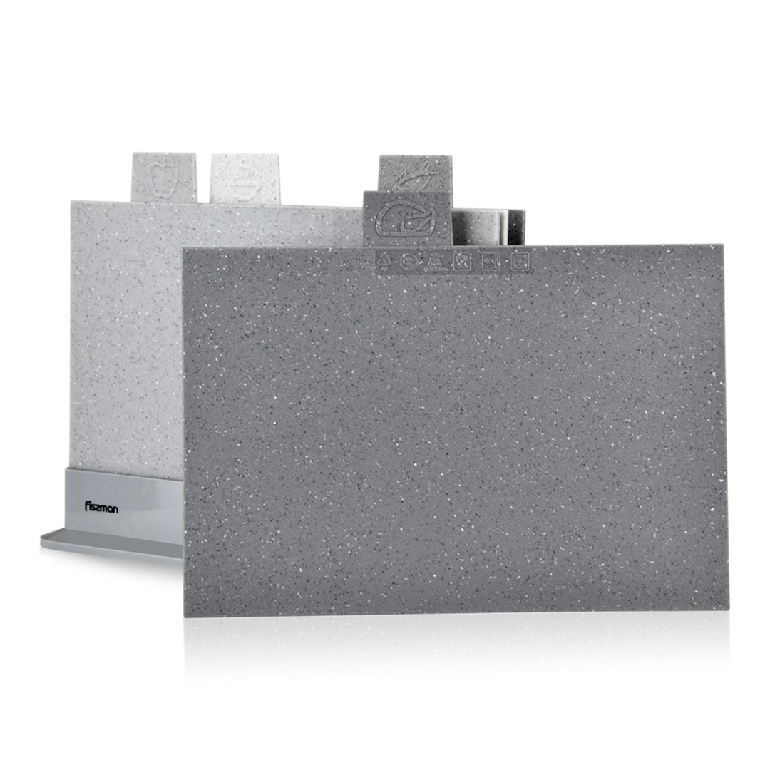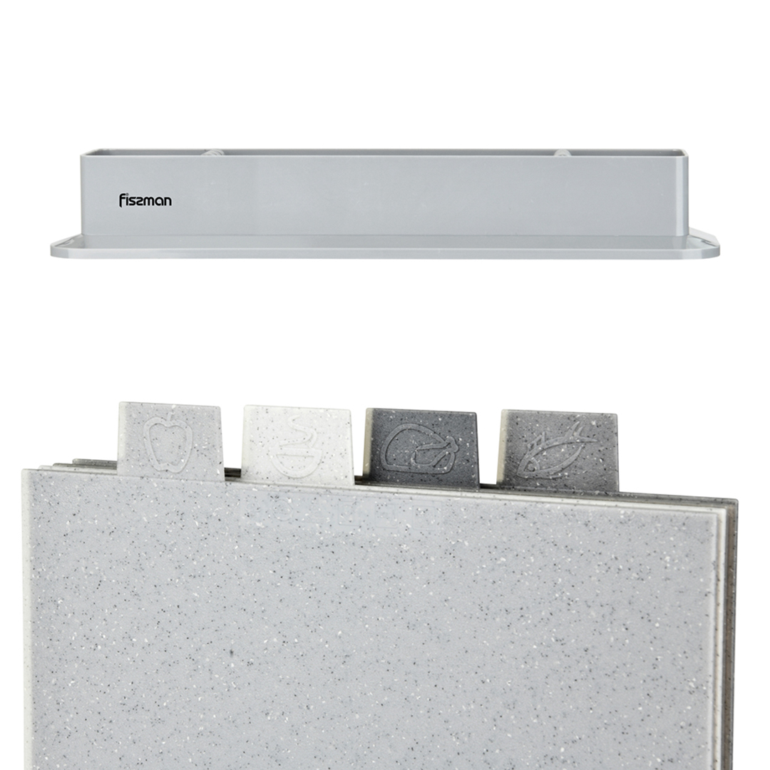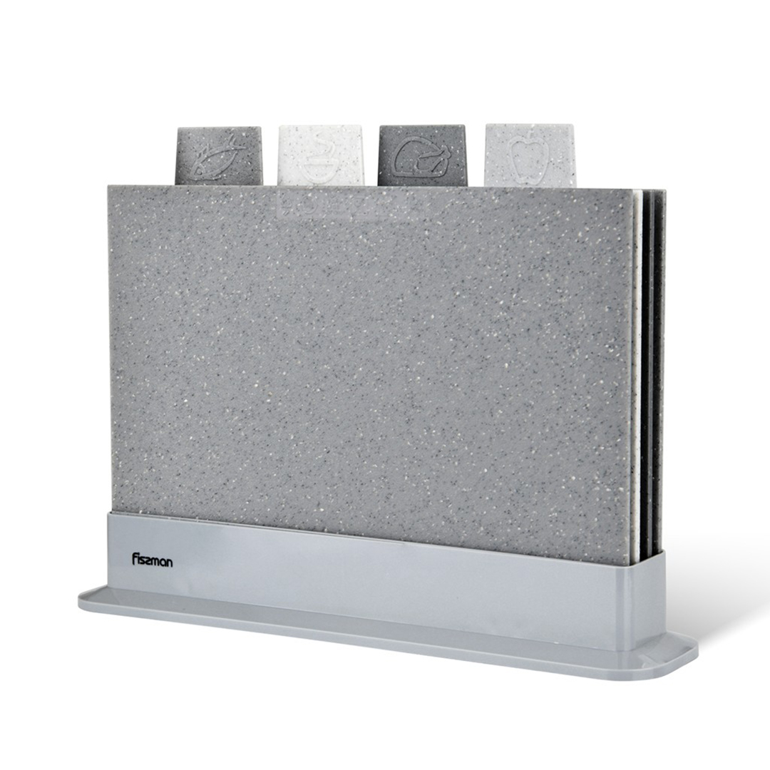 Fissman griešanas dēlīšu komplekts ar statīvu ir moderns, stilīgs un īpaši praktisks risinājums, kas palīdzēs uzturēt augstākos higiēnas standartus Jūsu virtuvē. Komplektā ietilpst četri dēlīši, kas paredzēti dažādām pārtikas produktu grupām, un elegants statīvs, kurā tos ērti uzglabāt.