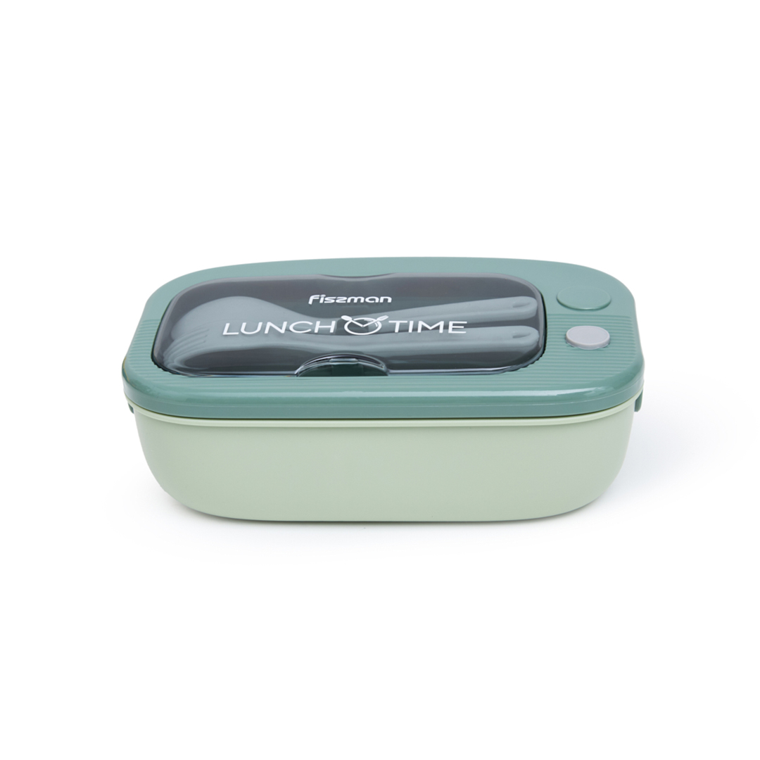 Pusdienu kārbā atradīsiet izturīgus galda piederumus – karoti un dakšiņu, kas droši stiprinās speciālā vietā zem vāka. Pateicoties šai pārdomātajai detaļai, Jums vairs nebūs jāuztraucas, vai neaizmirsāt piederumus mājās – viss, kas nepieciešams, vienmēr būs pa rokai.