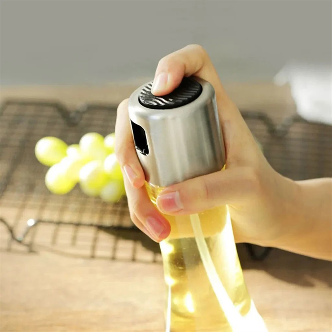 - Lietošana: Ielejiet vēlamo šķidrumu (eļļu vai etiķi) traukā un cieši uzskrūvējiet smidzināšanas mehānismu. Spiediet smidzināšanas pogu, lai sasniegtu vēlamo dozēšanu.