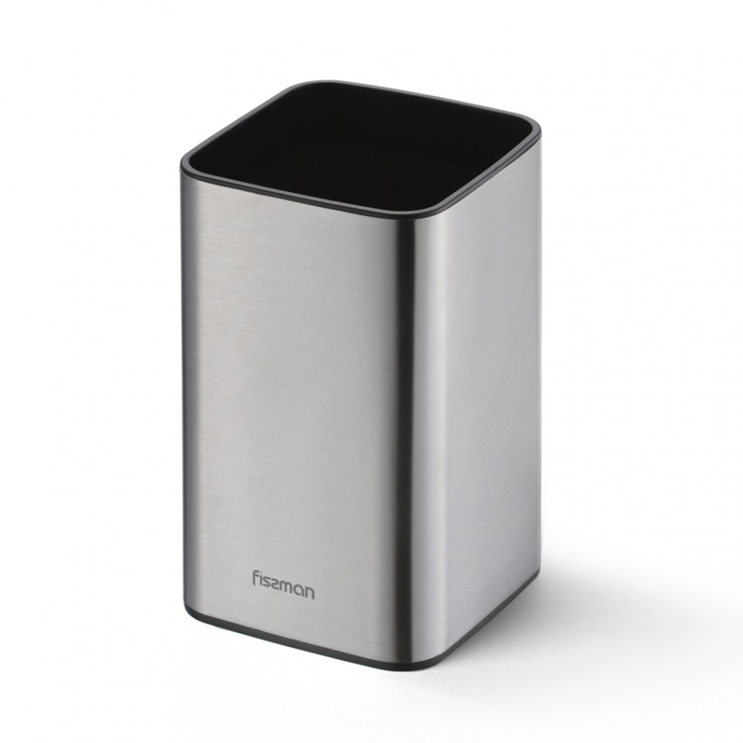 Specifikācijas Tips: Statīvs virtuves piederumiem Preču zīme: Fissman Modelis: F-2869 Materiāls: Hromēts oglekļa tērauds Izmēri (P x Dz x A): 9 x 9 x 15 cm Ražotājs: Fissman (Dānija) Svars: ~0.2 kg Iepakojuma izmēri: 10 x 10 x 16 cm