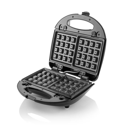Universāls 4-in-1 aparāts, kas paredzēts karstu sviestmaižu, panini, beļģu vafeļu un grila ēdienu (piemēram, dārzeņu vai gaļas) cepšanai. Pateicoties maināmām plāksnēm, viens aparāts aizstāj četrus.