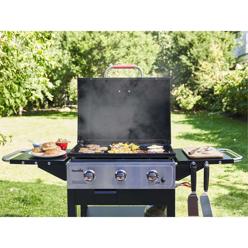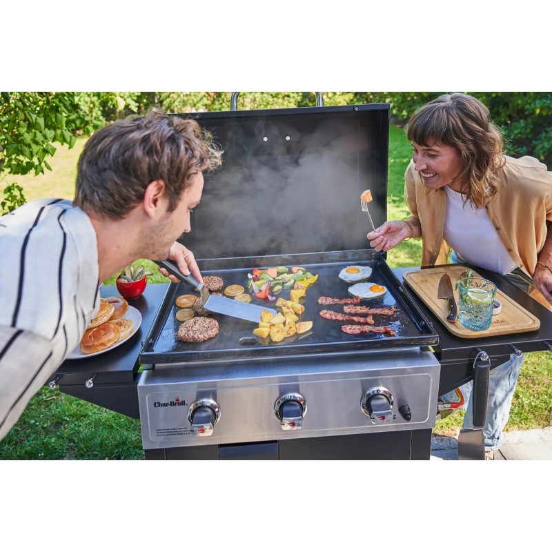 Ja meklējat grilu, kas ļautu cept ne tikai gaļu, bet arī dārzeņus, jūras veltes vai pat brokastis, Char-Broil Griddle 3400 ir lieliska izvēle. Liela, ar porcelānu pārklāta čuguna cepšanas virsma nodrošina vienmērīgu karstuma sadalījumu un saglabā produktu sulīgumu.