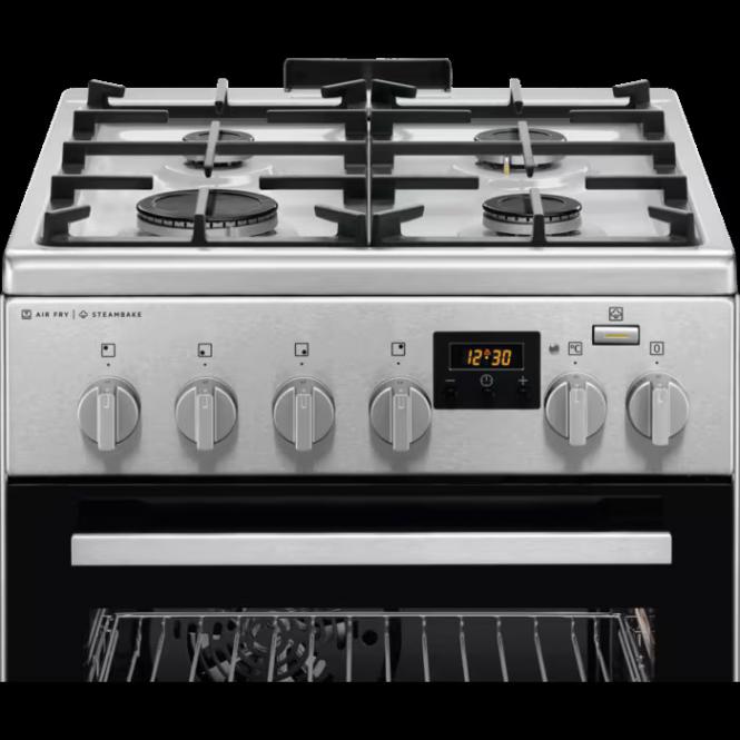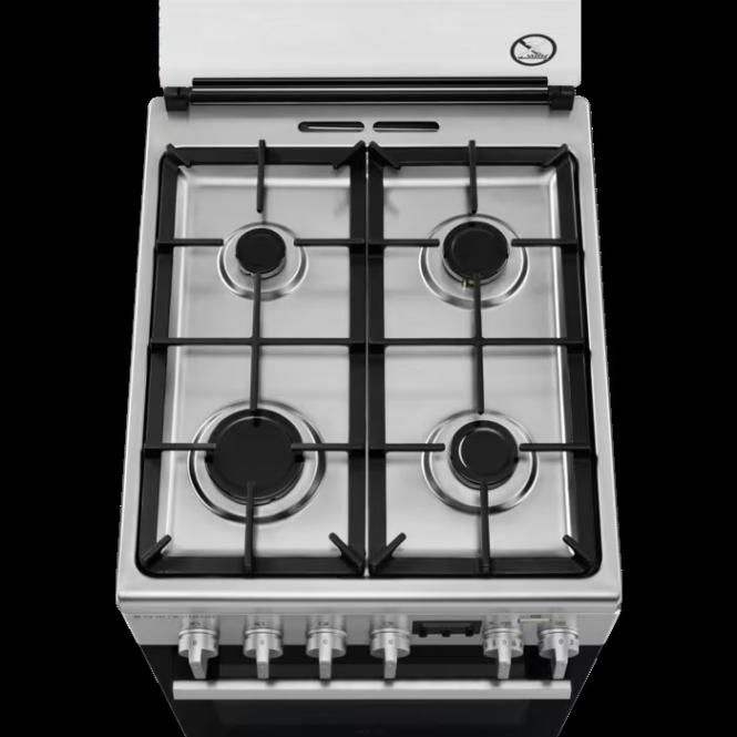 Kompakta (50 cm plata) brīvi stāvoša gāzes plīts ar daudzfunkcionālu elektrisko cepeškrāsni. Ideāli piemērota mazākām virtuvēm un tiem, kas mīl gāzes plīts virsmas priekšrocības, bet vēlas arī modernas elektriskās cepeškrāsns funkcijas.