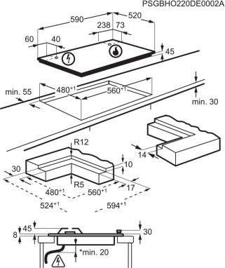 Ievietojiet plīts virsmu sagatavotajā 560×480 mm atverē virsmā.