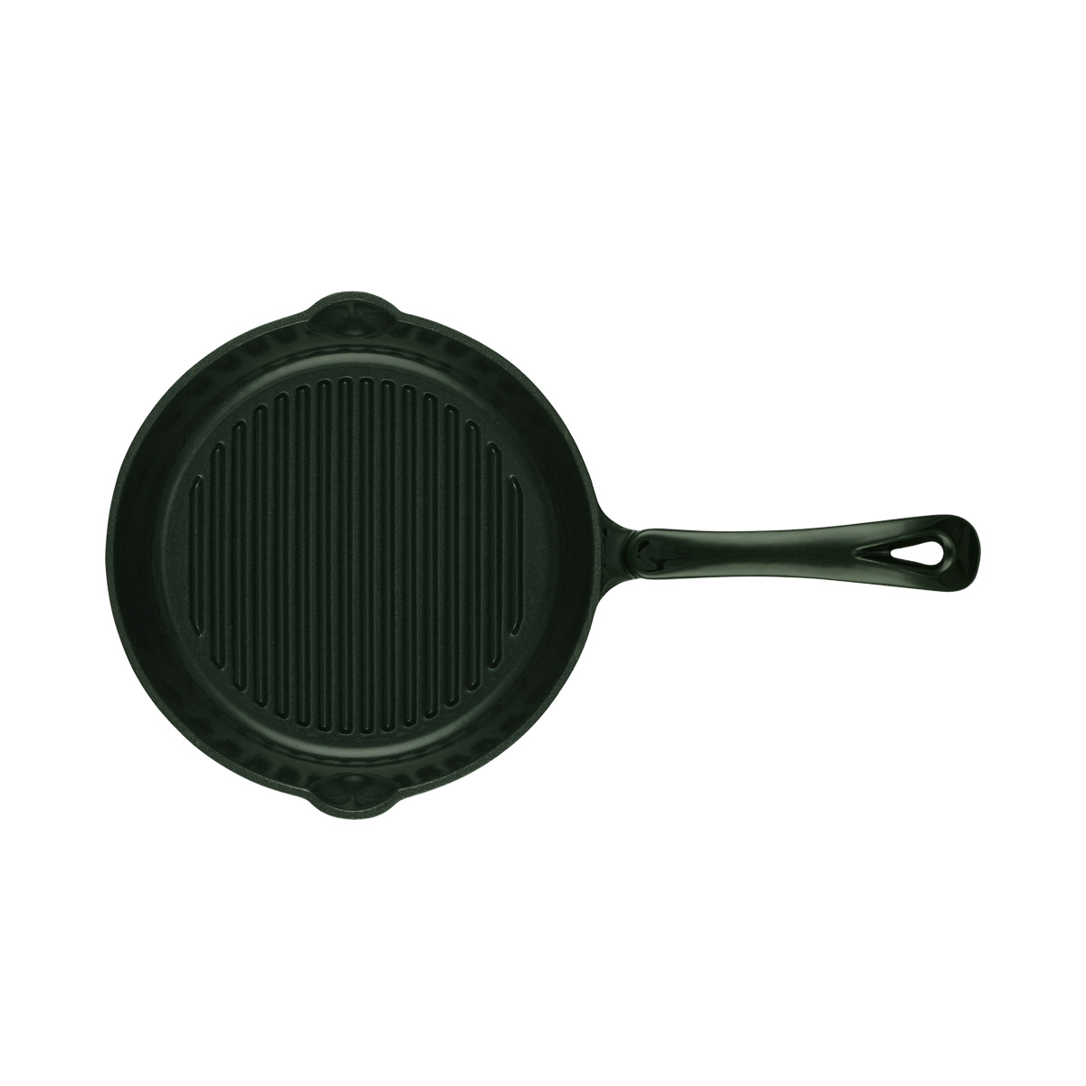 Izvirzītās svītras paceļ ēdienu no dibena, tāpēc gaļas vai dārzeņu virsma pārklājas ar skaistām, apetīti rosinošām apbrūnināšanas zīmēm. Tajā pašā laikā tauku pārpalikums notek starp svītrām, tāpēc ēdieni cepas, nevis sautējas savā sulā, un kļūst veselīgāki. Stilīga tumši zaļa ārējā emaljas pārklājums padara šo pannu par īstu virtuves rotājumu.