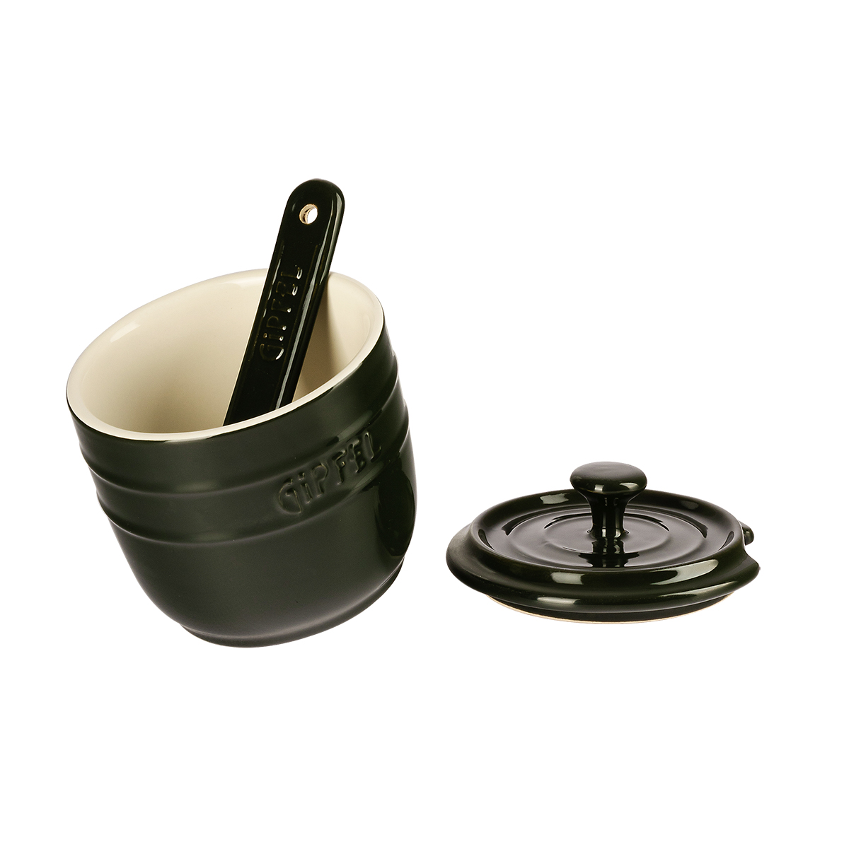 Iepazīstinām ar GIPFEL Majolica 3916 – burvīgu cukurtrauku ar nelielu mucas formas dizainu, kas kļūs par Jūsu galda rotājumu. Iedvesmojoties no tradicionālās franču keramikas, šim cukurtraukam ir dziļa tumši zaļa krāsa ārpusē un gaišs smilšu tonis iekšpusē. Tas ir ne tikai trauks, bet arī interjera detaļa.