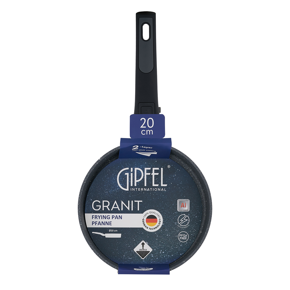 GIPFEL Granit 26 cm panna ir universāls risinājums pusdienu vai vakariņu gatavošanai 3–4 cilvēku ģimenei. Šim modelim ir ievērojams 6 cm dziļums, tāpēc tajā ir ērti ne tikai cept, bet arī sautēt. Galvenā priekšrocība – noņemams rokturis. Tas ļauj pannu viegli pārvērst par cepšanas formu cepeškrāsnī vai kompakti ievietot trauku mazgājamā mašīnā, ledusskapī vai skapītī.