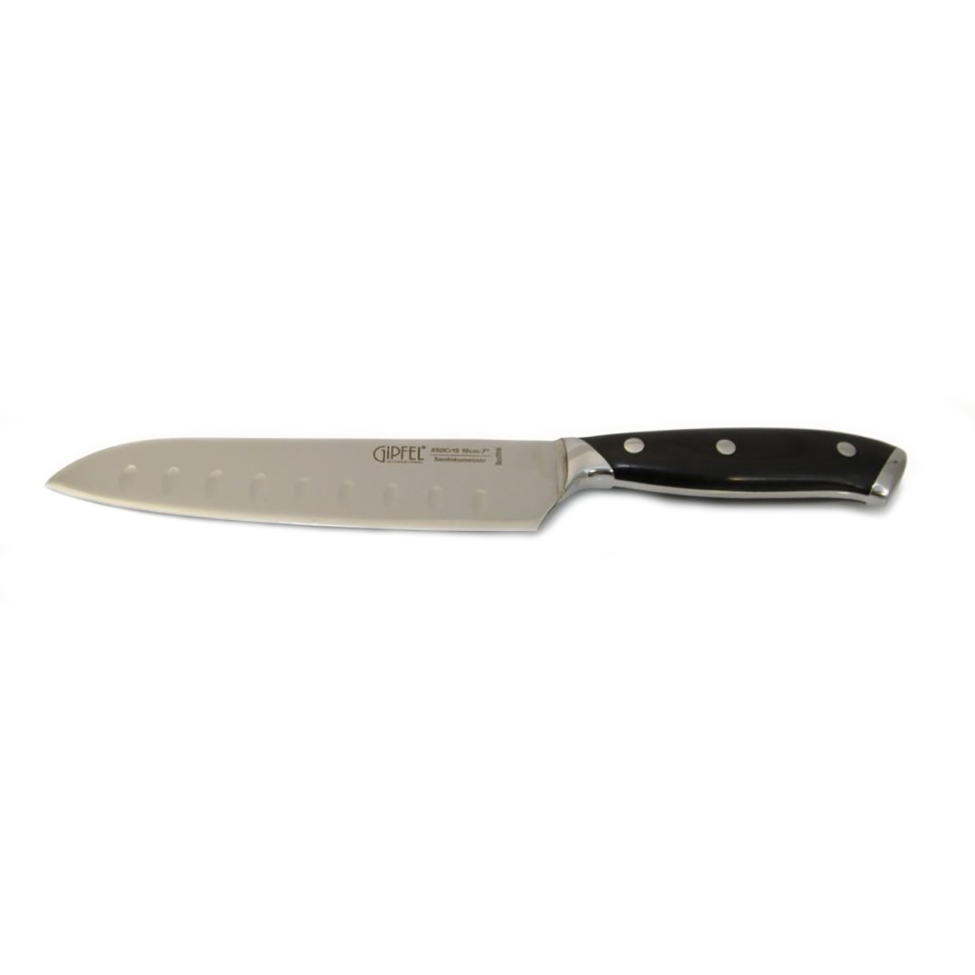 Iepazīstinām ar GIPFEL Vilmarin sērijas Santoku nazi – neaizstājamu instrumentu tiem, kas virtuvē novērtē precizitāti un daudzpusību. Santoku (no japāņu valodas – “trīs tikumi”) forma ir apvienota ar vācu kvalitāti, radot īpaši asu nazi griešanai, kapāšanai un smalcināšanai. Dizaineru un inženieru komanda ir izstrādājusi šo nazi tā, lai tas kļūtu par dabisku rokas pagarinājumu.