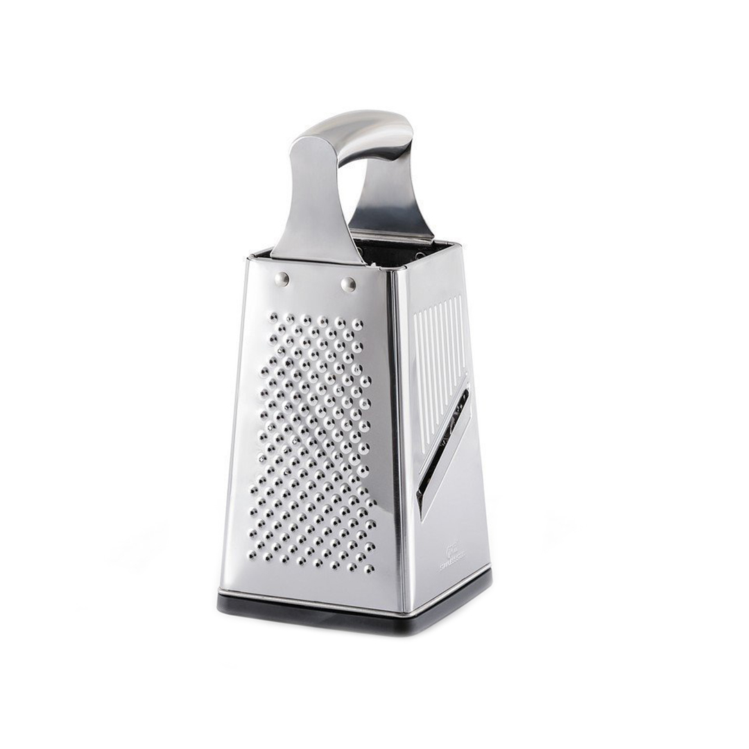 4 griešanas veidi: Četras dažādas malas ļauj izvēlēties vēlamo rīvēšanas veidu: no smalkas rīvēšanas (piemēram, citrona miziņai) līdz rupjai griešanai (piemēram, sieram vai dārzeņiem).