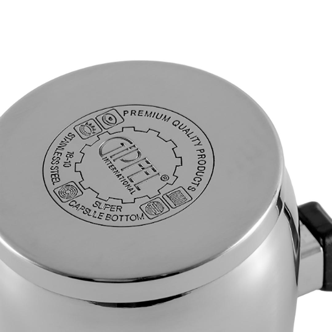 Iepazīstinām ar GIPFEL MAREE 5582 – šīs sērijas pašu lielāko Turku (džezvu), kuras tilpums sasniedz pat 820 ml. Tas ir ideāls risinājums, kad nepieciešams pagatavot turku kafiju lielai ģimenei vai viesu pulkam, vai vienkārši patīk dzert kafiju no lielām krūzēm. Izgatavota no augstākās kvalitātes 18/8 nerūsējošā tērauda, tā nodrošina ilgmūžību un nevainojamu garšu.