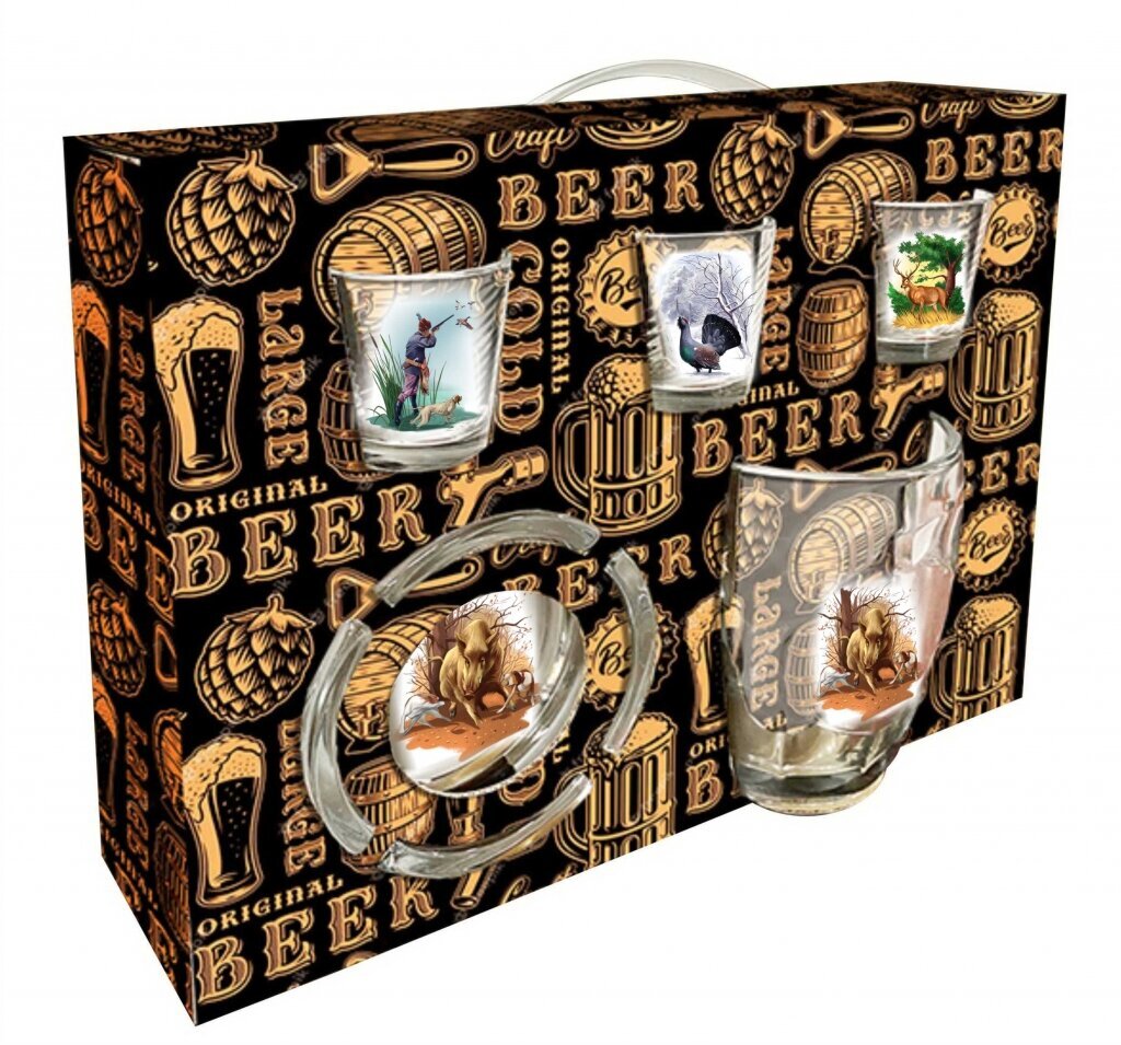 Šis 7 daļu stikla komplekts ir radīts, lai atdzīvinātu jebkuru pasēdēšanu. Tā ir praktiska un garastāvokli uzlabojoša dāvana, ko novērtēs draugi ar humora izjūtu. Komplekts iepakots krāsainā kastē ar uzrakstu “Komplekts draudzīgām pasēdēšanām” (krievu val. Набор для дружной компании), tāpēc tas ir gatavs dāvināšanai.