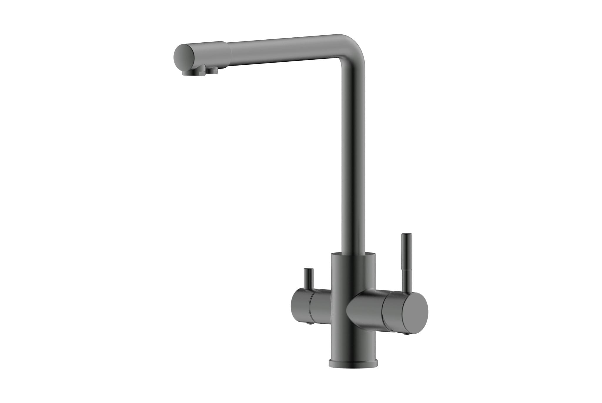 Virtuves jaucējkrāns PERLE Gun Metal Günter & Hauer ir eleganta un funkcionāla izvēle, kas lieliski piemērota gan modernām, gan industriāla stila virtuvēm.