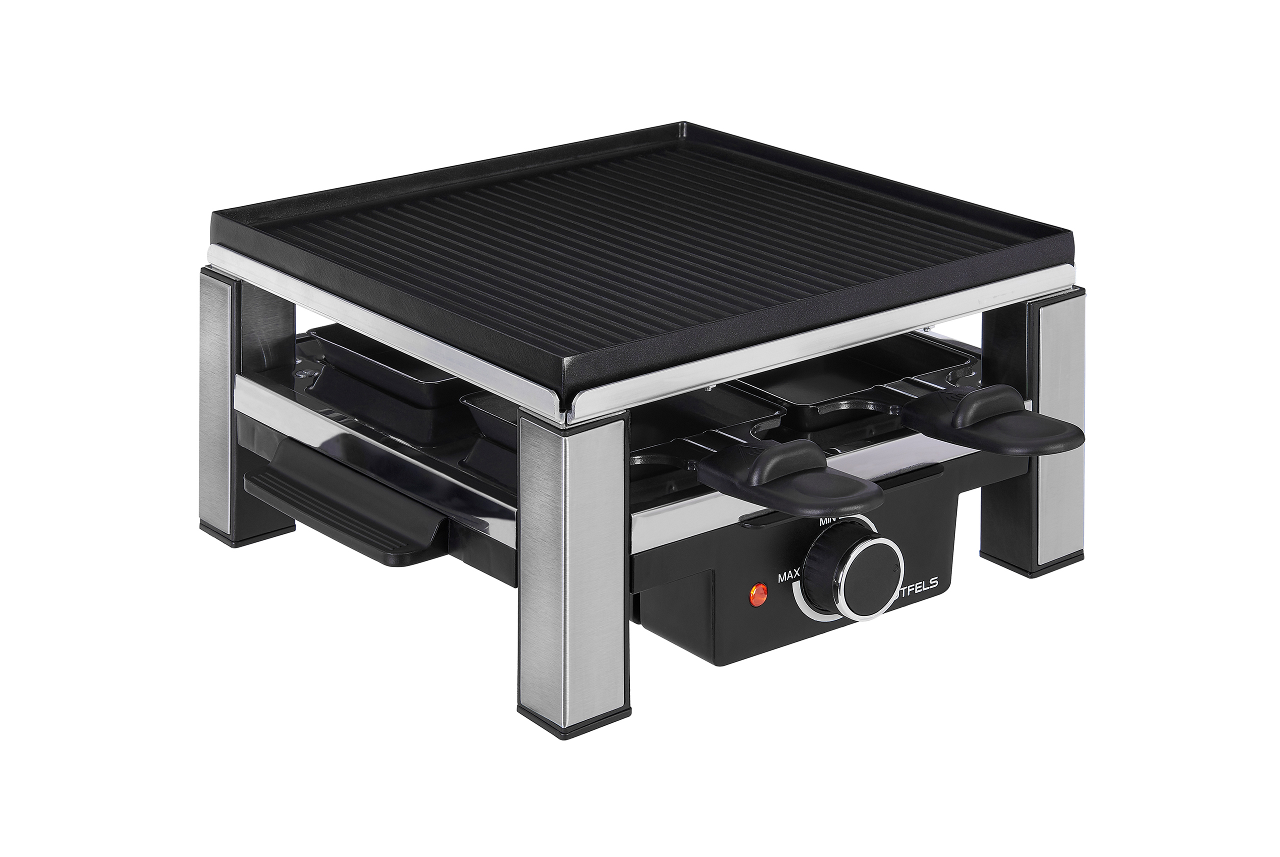 Elektriskais grils (raklete un grils vienā), kas paredzēts gaļas, dārzeņu un siera cepšanai uz nepiedegošas virsmas. Piemērots 4 personām.