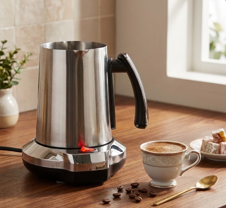 IBRAHIM 200S – tas ir elegants un funkcionāls aparāts, kas kļūs par neatņemamu Jūsu virtuves daļu. Šis kompaktais aparāts, kas izgatavots no spīdīga nerūsējošā tērauda, ir radīts ne tikai aromātiskas turku kafijas pagatavošanai, bet arī, lai atvieglotu citus ikdienas darbus: piena uzsildīšanu brokastīm vai karsta ūdens pagatavošanu tējai.