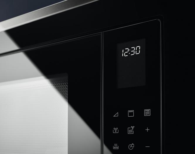 Šī mikroviļņu krāsns ir izstrādāta tā, lai ideāli saskanētu ar citām Jūsu Electrolux ierīcēm. Eleganta melna stikla virsma un gluds skārienjutīgs vadības panelis rada vienotu, viegli tīrāmu virsmu bez izvirzītiem rokturiem. Durvis atvērsiet ar vienu pogas spiedienu.