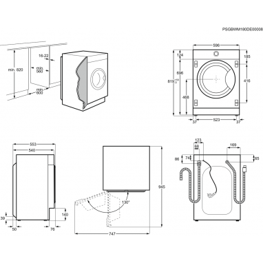 - Produkta tips: Pilnībā iebūvējams veļas mazgājamais-žāvētājs