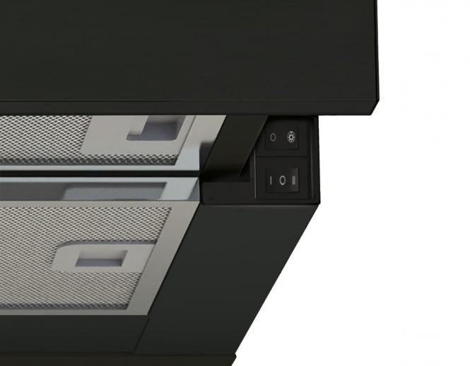Šis tvaika nosūcējs ir radīts Jūsu ērtībai. Lai to ieslēgtu, vienkārši izvelciet priekšējo paneli – tādējādi ne tikai aktivizēsiet ierīci, bet arī palielināsiet tvaiku savākšanas laukumu. Ar uzticamu mehānisko vadības slēdzi (sviru) varēsiet izvēlēties vienu no diviem vilkmes ātrumiem.