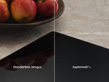 Gluži pretēji, SaphirMatt tekstūra ir izturīga pret pirkstu nospiedumiem, tāpēc plīts virsma vienmēr izskatās kārtīga bez pastāvīgas pulēšanas.