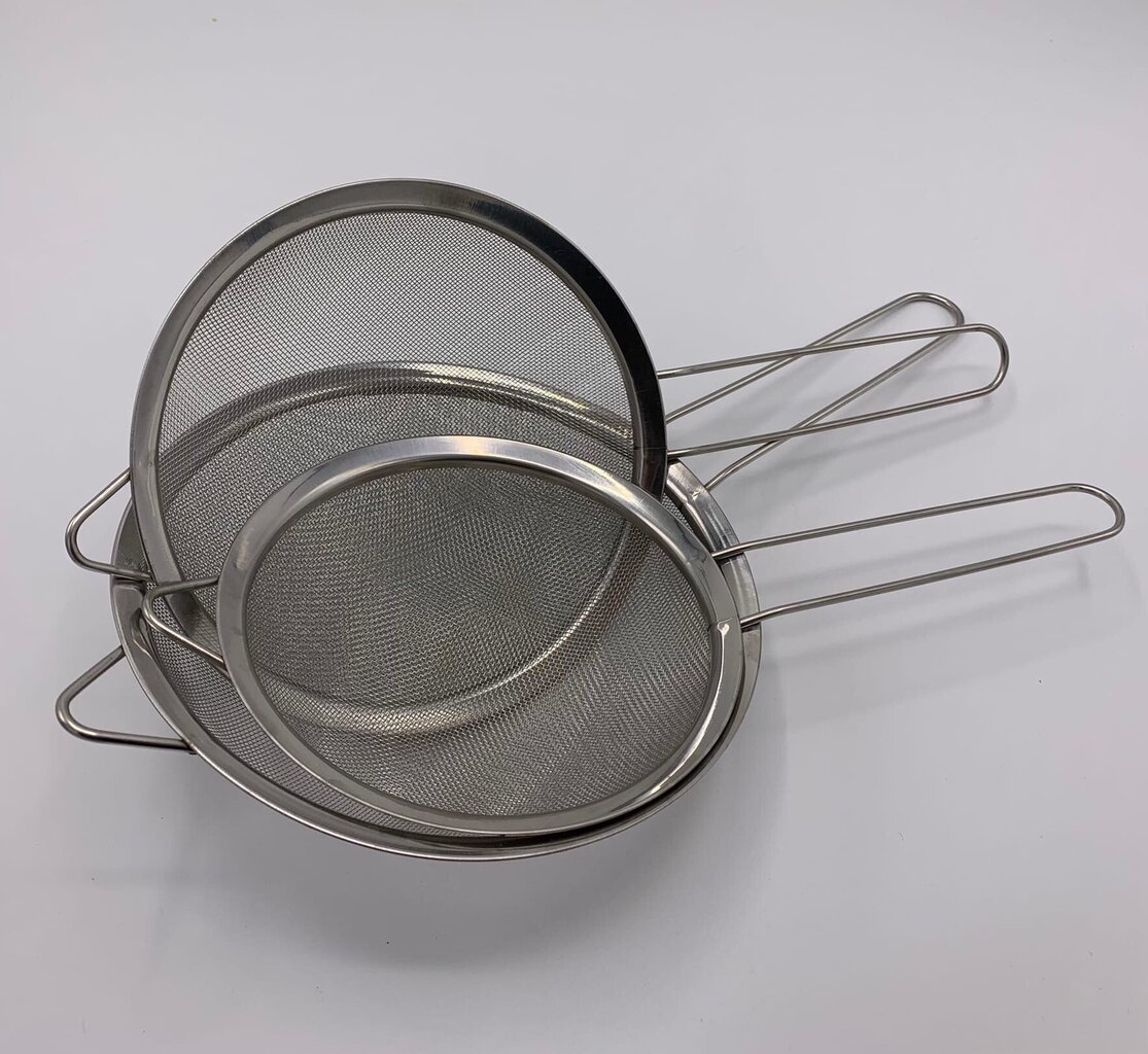 Šis “L” izmēra sietiņu komplekts ir lielākais mūsu sortimentā, paredzēts tiem, kam standarta virtuves rīki ir vienkārši par mazu. Komplektā ietilpst iespaidīga izmēra 18 cm, 20 cm un 22 cm diametra sietiņi, kas savas ietilpības un funkcionalitātes ziņā pielīdzināmi lieliem caurduriem, taču smalkā tīkliņa dēļ ir daudz universālāki.