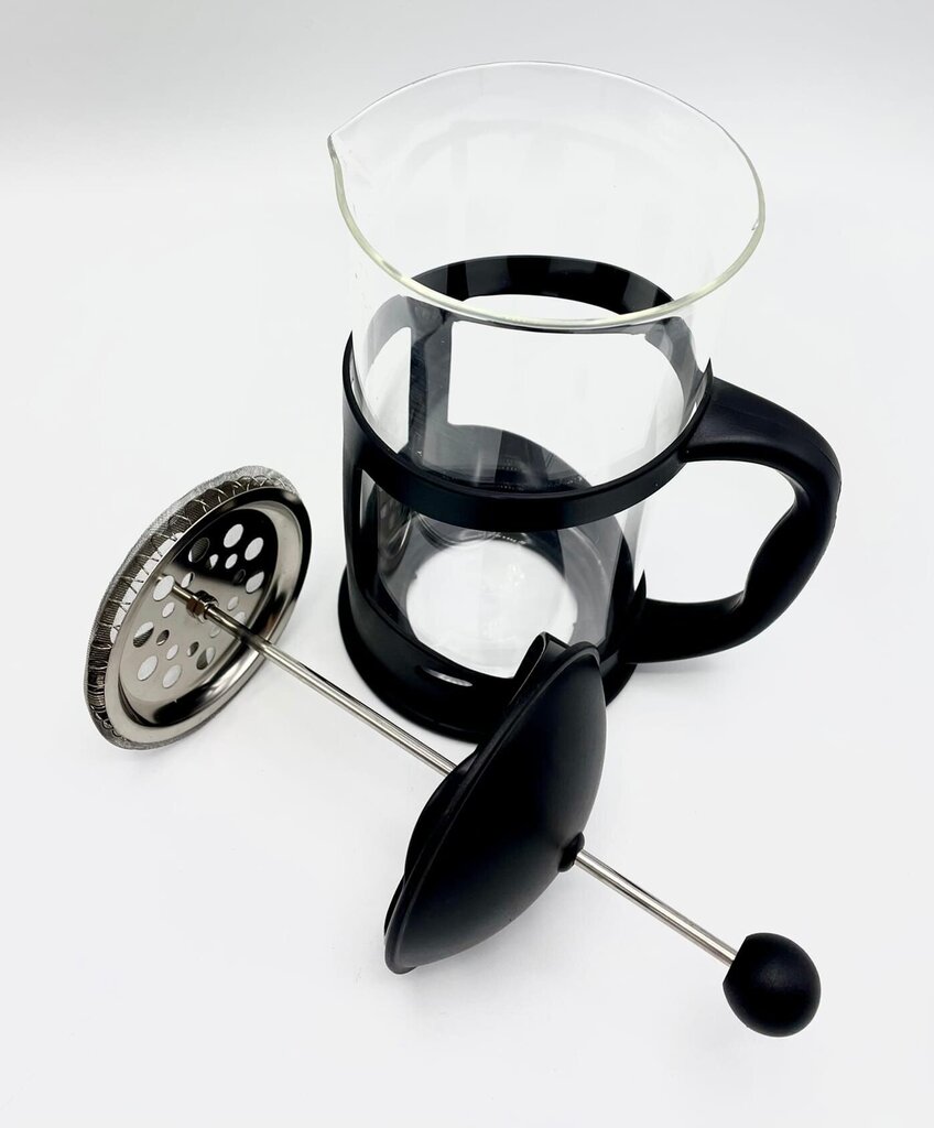 - Kvalitatīvi materiāli: Korpuss izgatavots no karstumizturīga stikla, kas nemaina dzēriena garšu. Ārējais rāmis un rokturis izgatavoti no izturīgas melnas plastmasas, kas aizsargā stiklu un nesakarst.