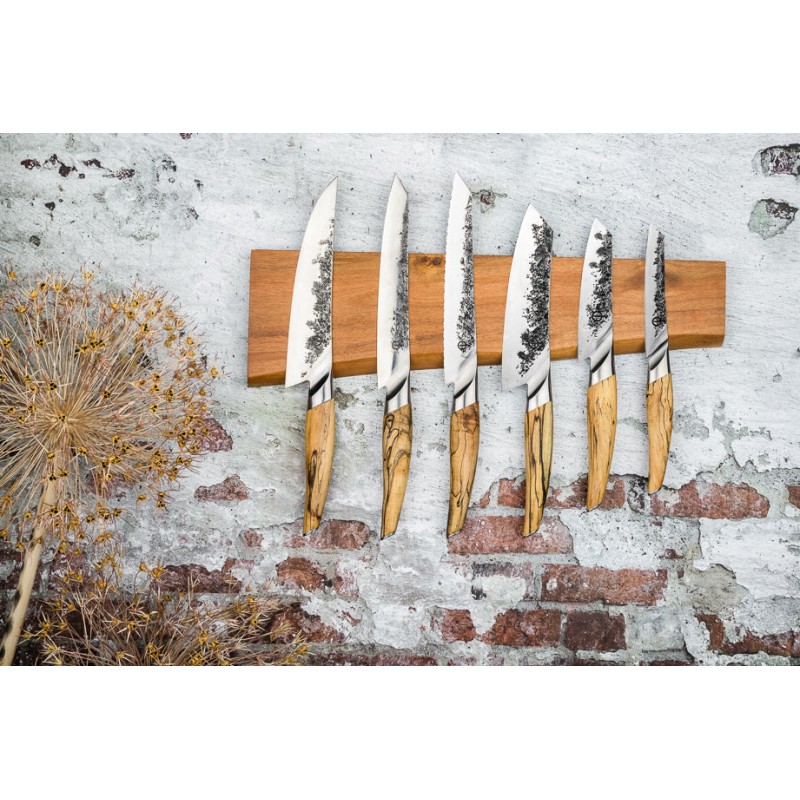 Šis nazis ir izgatavots no augstākās kvalitātes japāņu VG10 tērauda, kas izceļas ar īpašu asumu un izturību. Tā cietība sasniedz 60 Rokvela vienības, nodrošinot ilgstošu nodilumizturību. Asmens garums ir 12,5 cm (4,9 collas), bet biezums – 2 mm, padarot to īpaši precīzu un ērti lietojamu. Nazis ir asināts 18 grādu leņķī, nodrošinot optimālu asuma un stiprības kombināciju. Svars – tikai 90 grami, tāpēc nazis ir viegls un labi līdzsvarots. Roku darbs, izgatavots no 5 tērauda slāņiem.