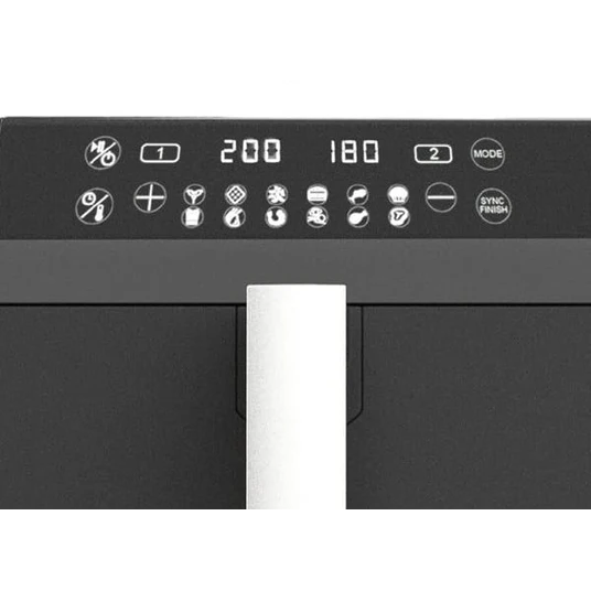 Gaisa friteze ir paredzēta fritēšanai, cepšanai un uzsildīšanai, neizmantojot vai izmantojot minimālu eļļas daudzumu. Pateicoties **10l** tilpumam un divu zonu sistēmai, tā ir lieliski piemērota lielām ģimenēm, ļaujot vienlaicīgi pagatavot pamatēdienu un piedevu.