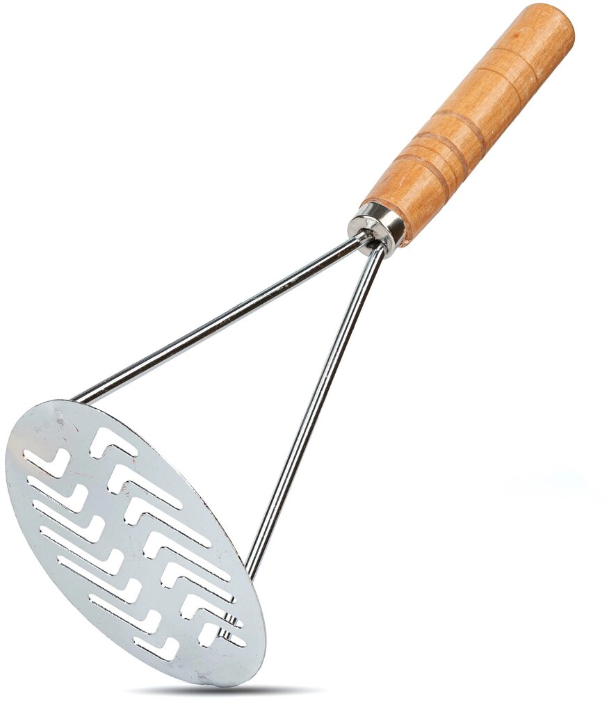 Vēlaties pagatavot īstu, mājīgu kartupeļu biezputru? Šī klasiskā kartupeļu stampiņa ar koka rokturi ir tieši tas, kas jums nepieciešams. Vienkāršs, bet efektīvs dizains ļauj ātri un bez lielas piepūles sasmalcināt vārītus dārzeņus maigā, gaisīgā masā.