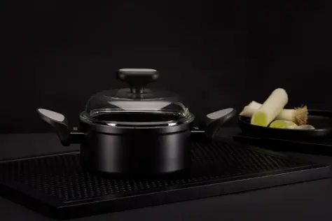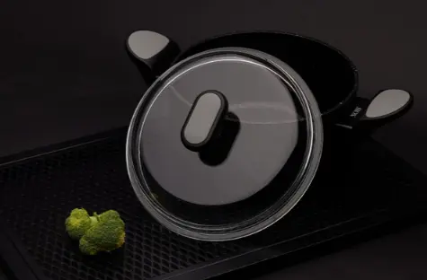 Borosilikāta stikla vāks: izturīgs pret pēkšņām temperatūras svārstībām un ļauj novērot procesu, neatverot trauku.