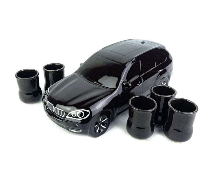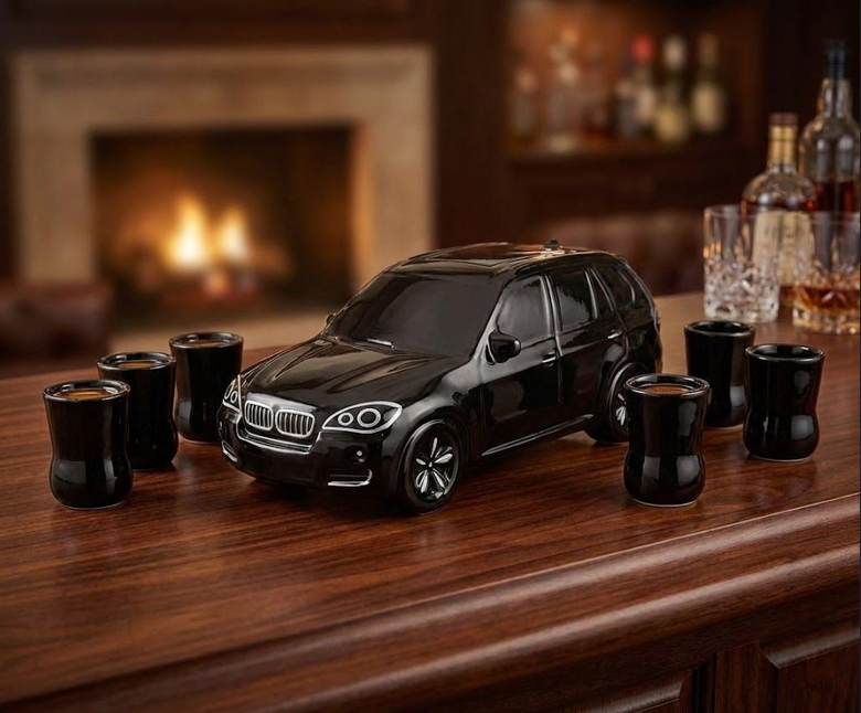 Piedāvājam ekskluzīvu dāvanu komplektu vīriešiem – BMW automašīnas formas dzērienu trauku. Šis komplekts atdarina slavenā, populārā un daudzu iekārotā automobiļa siluetu, piešķirot galdam vīrišķīgu raksturu un solidaritāti. Tas ir ne tikai trauks dzērieniem, bet arī stilīgs interjera elements.