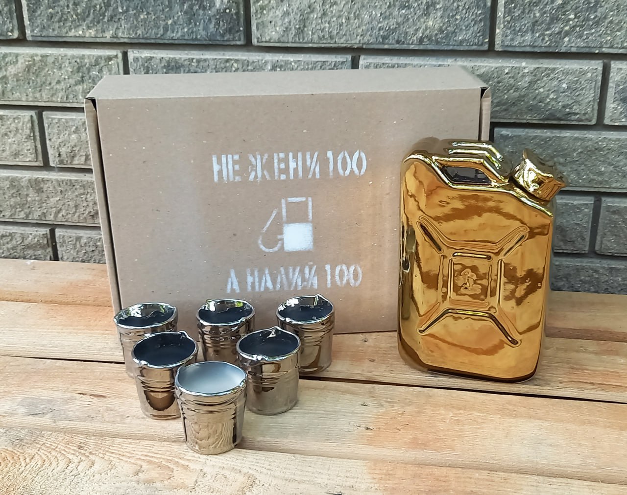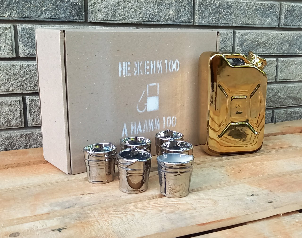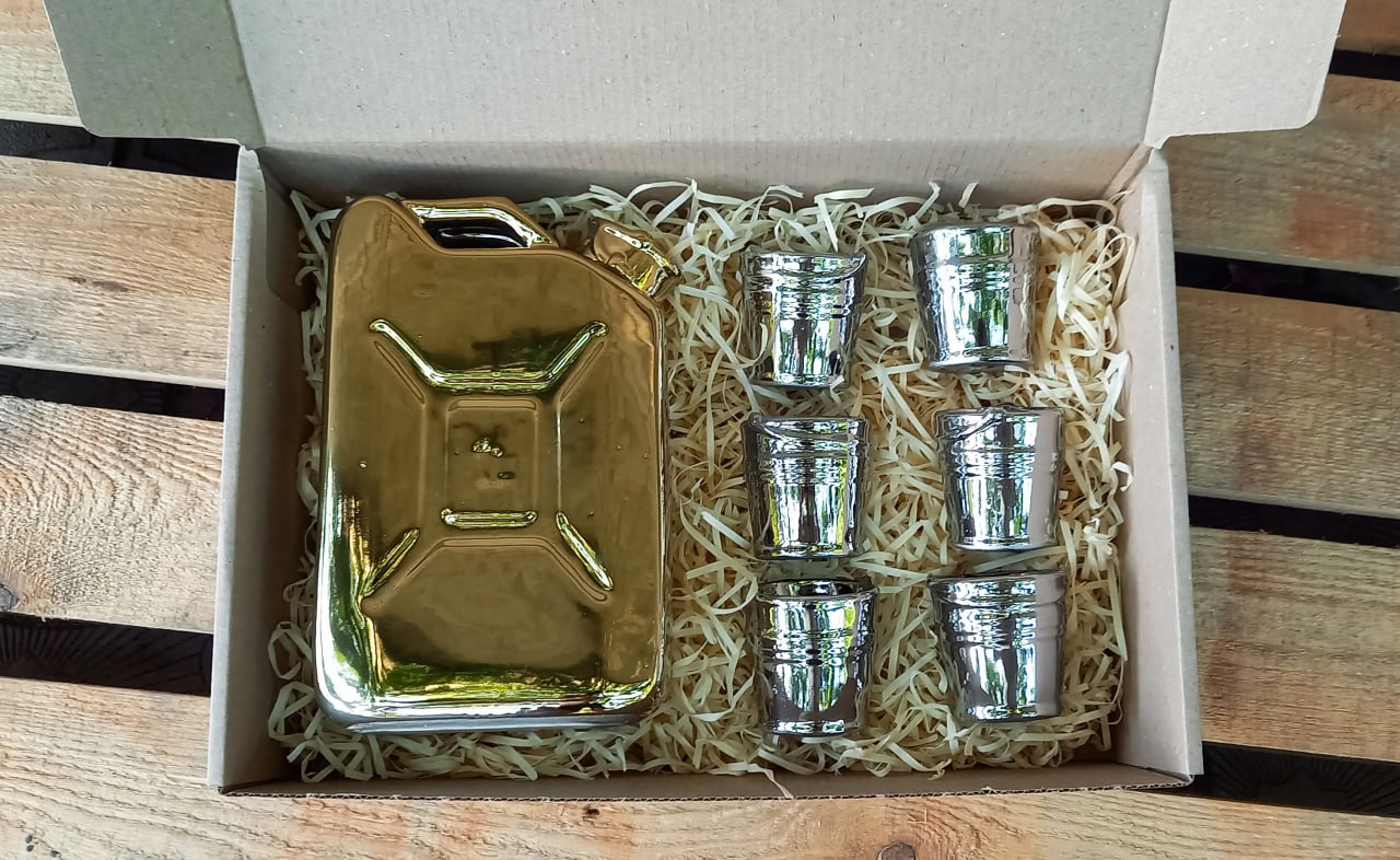 Šis oriģinālais komplekts ir jautra un tematiska dāvana vīrietim, kurš novērtē praktiskumu, automašīnas un labu humora izjūtu. Kanistra forma ir alūzija uz “degvielas uzpildi”, kas ir lieliski piemērota draugu sanākšanām. Tā ir dāvana, kas noteikti kļūs par sarunu akcentu un rotās jebkuru mājas bāru, garāžu vai vīriešu kompāniju.