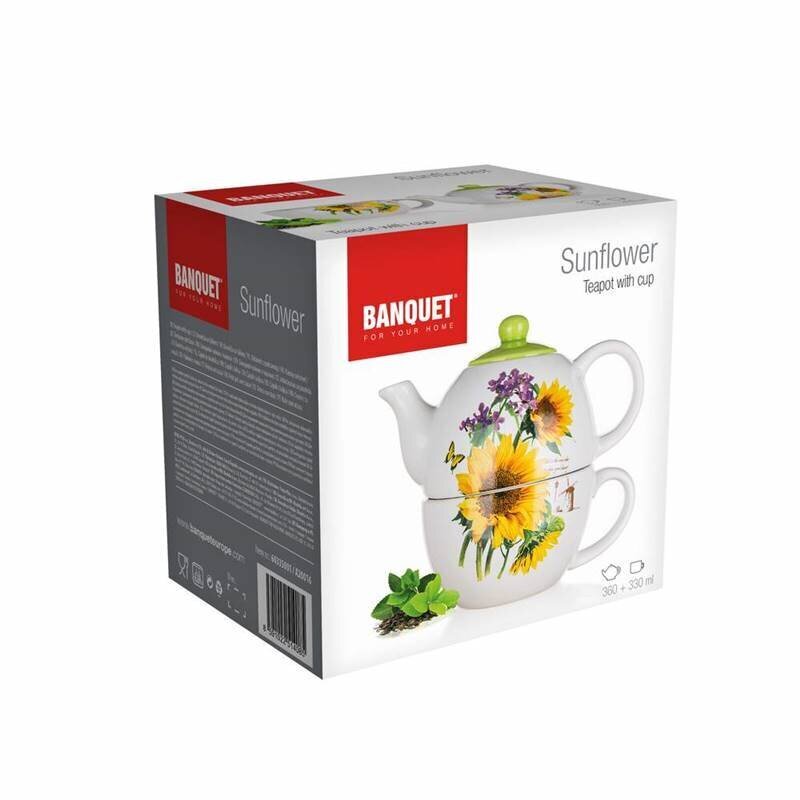 „Banquet“ keramikas komplekts „Sunflower“ ir lieliska izvēle tiem, kam patīk baudīt tējas rituālus vienatnē. Šis „Tea for One“ (tēja vienam) tipa komplekts apvieno funkcionalitāti ar rotaļīgu dizainu, ienesot jūsu virtuvē vasaras krāsas un siltumu.
