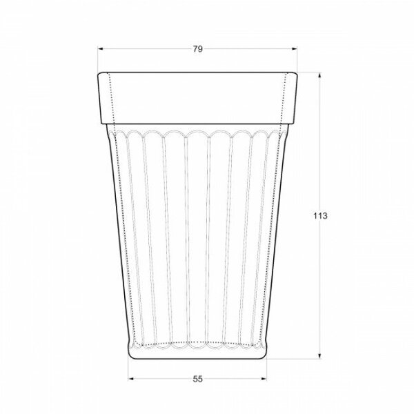 Šī klasiskā rievotā glāze ir viens no universālākajiem un atpazīstamākajiem traukiem virtuvē. Pateicoties savai specifiskajai formai un izturīgajam stiklam, tā kalpo gadiem ilgi un ir piemērota visdažādākajiem mērķiem.