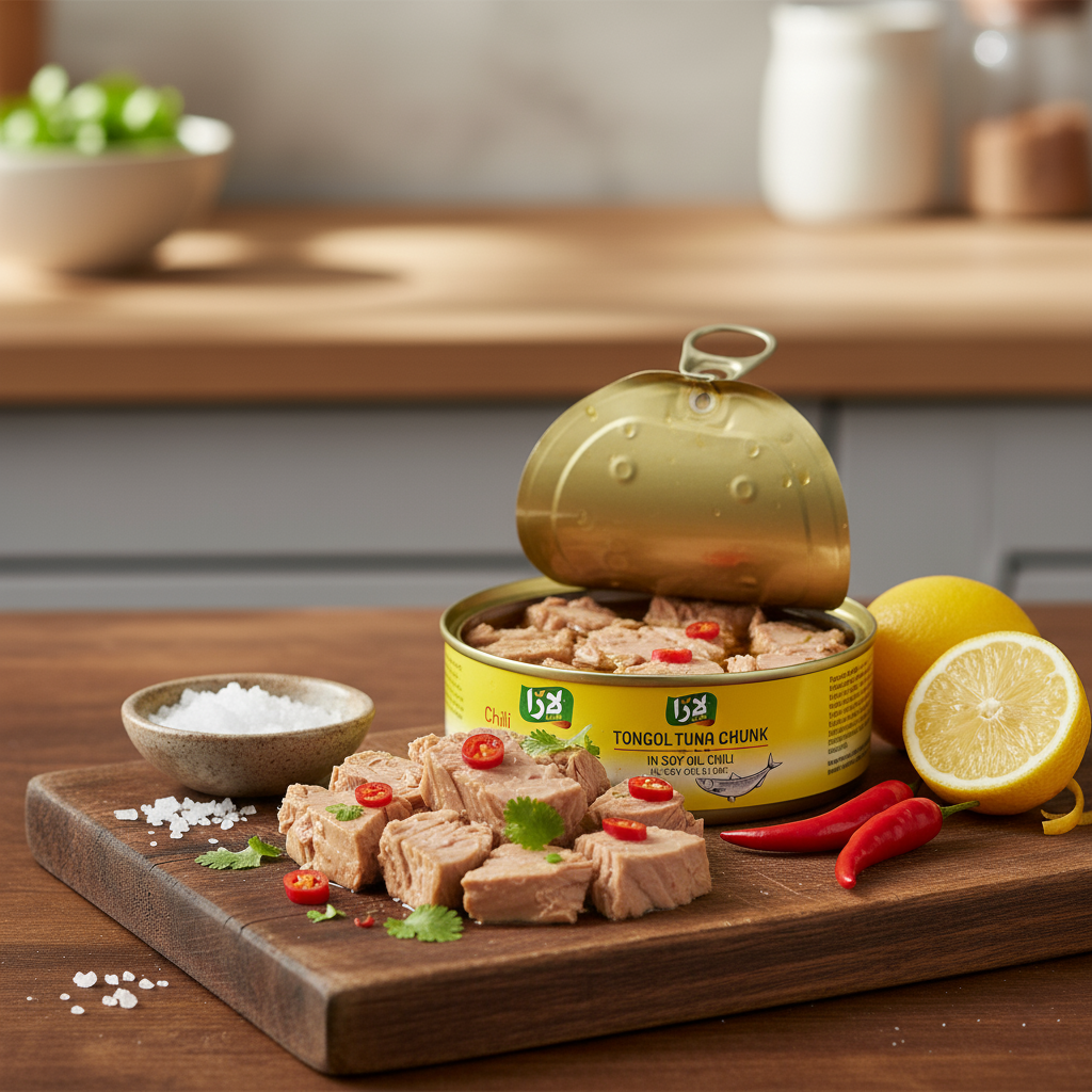 Tunzivis saulespuķu eļļā ar čili pipariem, paredzētas lietošanai kā uzkoda, salātu, sviestmaižu vai citu ēdienu sastāvdaļa.