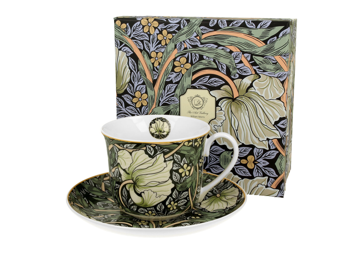 Šī lielā (400 ml) krūze ar apakštasīti “Pimpernel” ir daļa no “Art Gallery” sērijas, kas veltīta vienam no slavenākajiem 19. gadsimta dizaineriem – Viljamam Morisam. Tas ir ne tikai trauks dzeršanai, bet arī vēstures un mākslas daļiņa jūsu mājās.