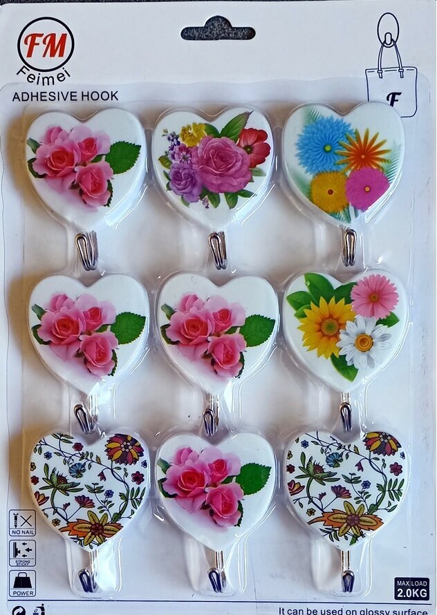 Lipnių kabliukų rinkinys, 9 vnt., iki 2,5 kg (MIX)